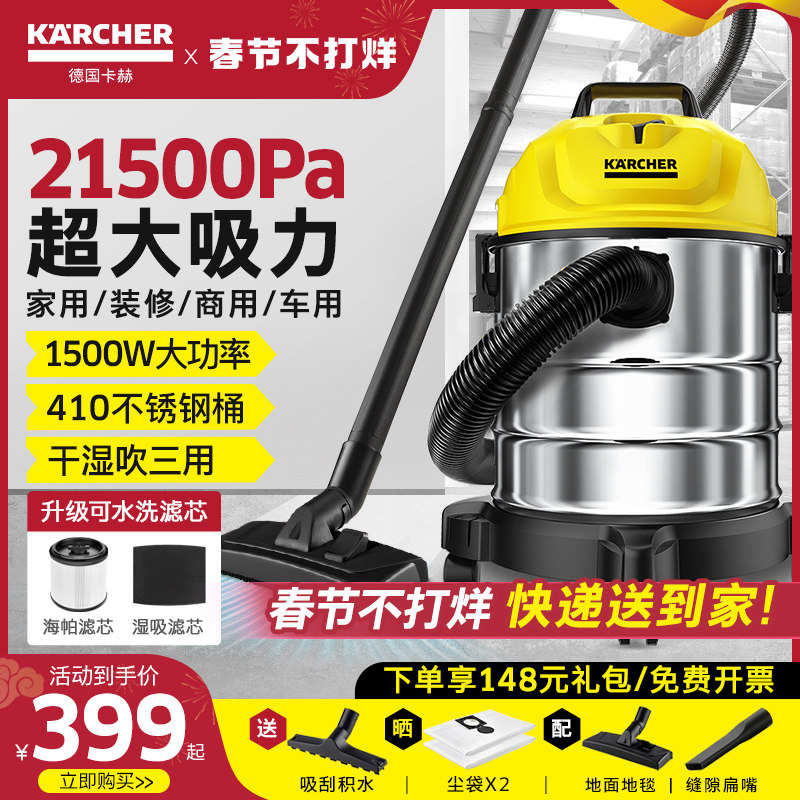 德国卡赫吸尘器大吸力家用强力大功率工业车用装修美缝吸水吸尘机