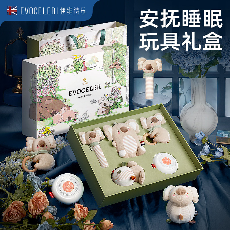 券 30元销量100英国evoceler新生婴儿安抚玩具礼盒玩偶套装初生宝宝满月礼物摇铃