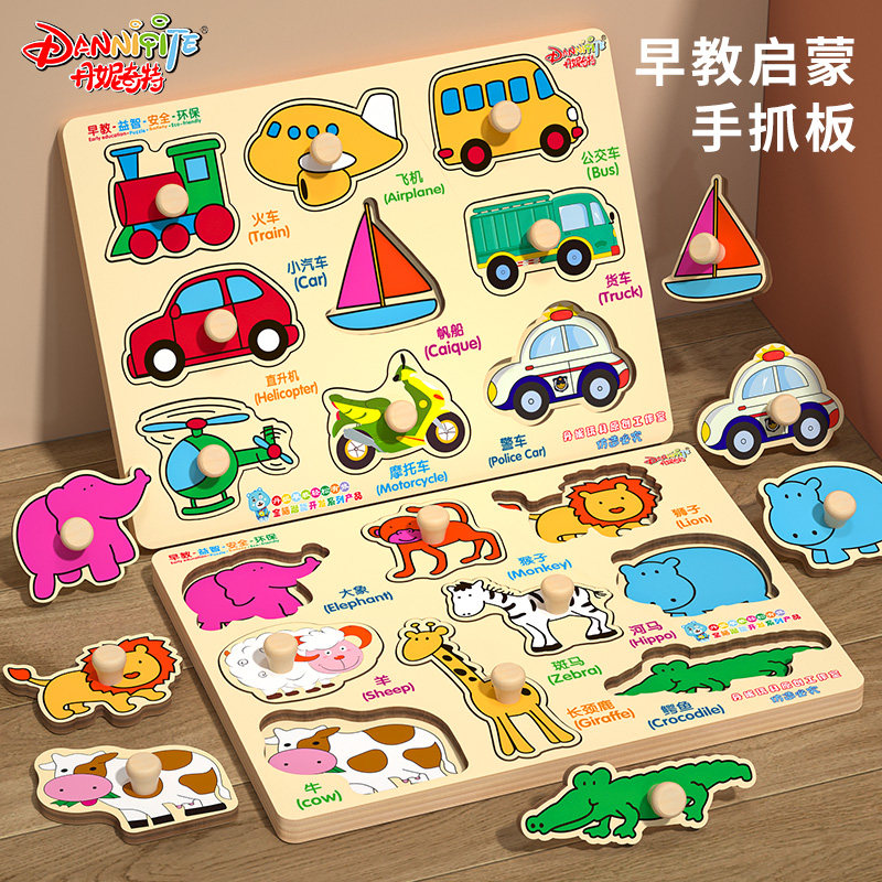 券 2元销量500木质手抓板拼图蒙氏早教益智玩具婴幼儿童积木1一2岁半3到6宝宝两