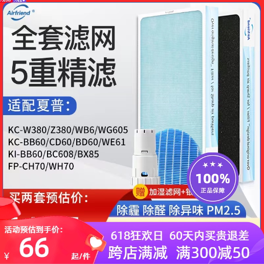 适配夏普空气净化器滤网KC-W380SW/280SW/Z200/BB60/WB6滤芯WG605