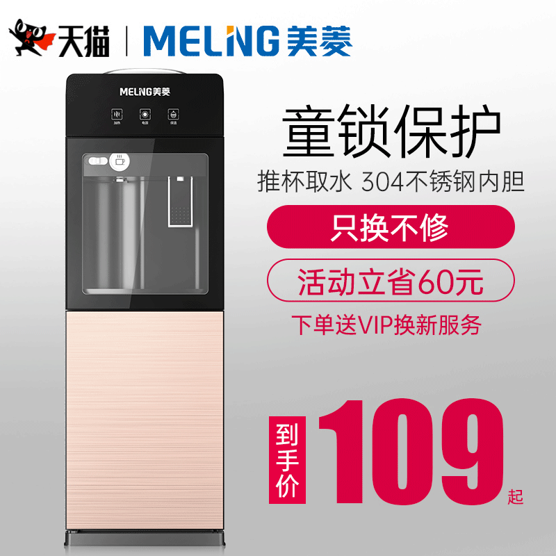券 39元销量100美菱饮水机立式家用智能制冷制热小型台式办公室全自动桶装水新款