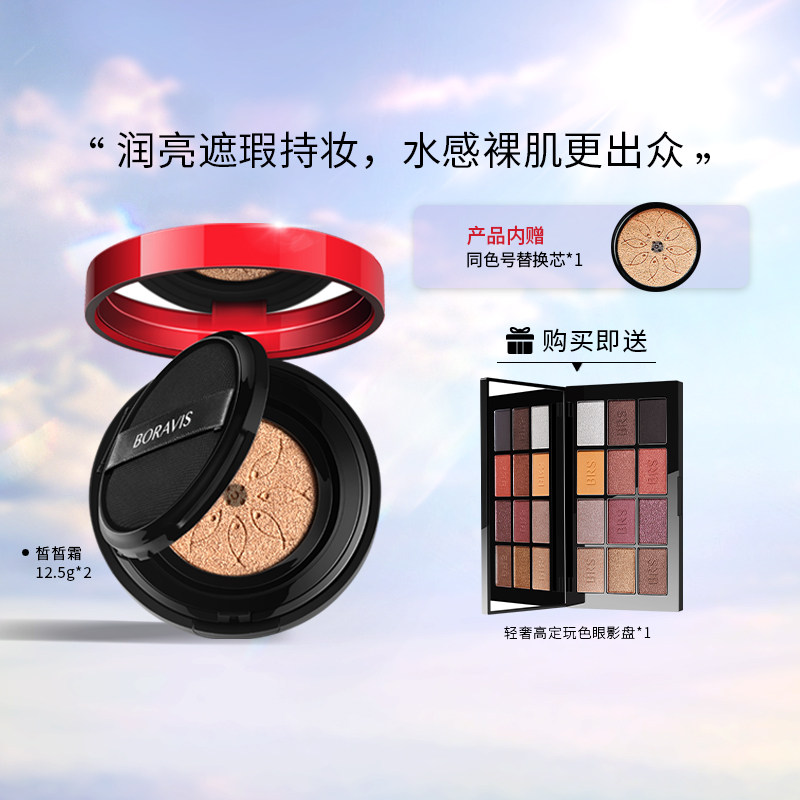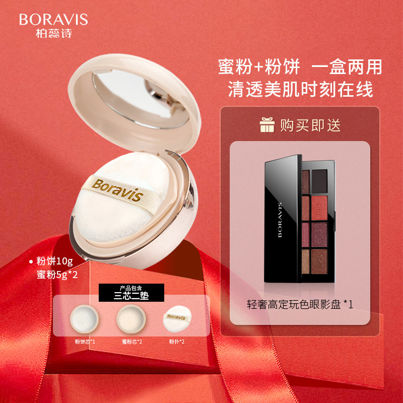 券 20元销量60柏蕊诗BORAVIS丝绒干湿两用粉饼遮瑕雾面哑光控油均匀肤色定妆粉