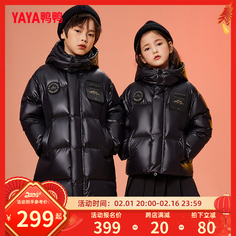 券 100元销量51鸭鸭儿童羽绒服男女童冬季新款童装中大童加厚保暖长款黑色面包服