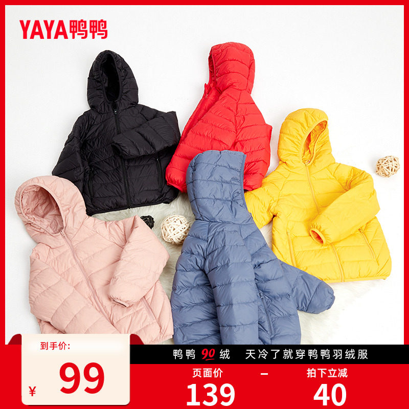 券 40元销量1000鸭鸭童装羽绒服女冬季儿童连帽宝宝装短款轻薄款纯色男童女童外套