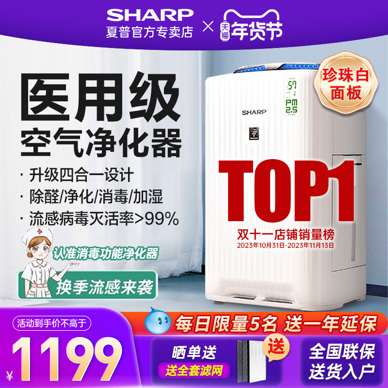 券 1220元销量57夏普空气净化器家用除甲醛雾霾烟尘异味sharp加湿净化一体消毒机
