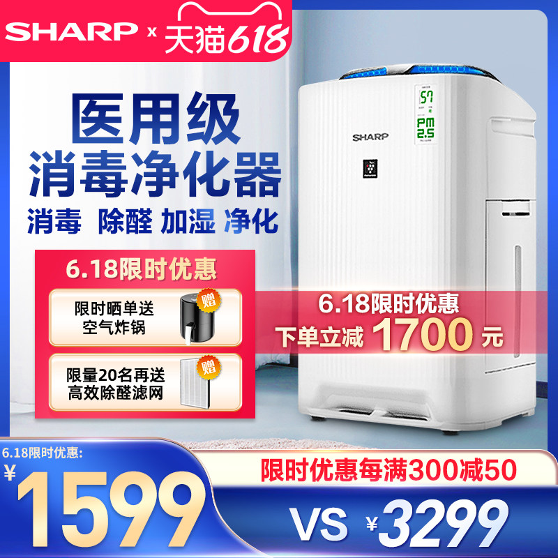 券 1323元销量50夏普空气净化器家用除甲醛雾霾烟尘异味sharp加湿净化一体消毒机