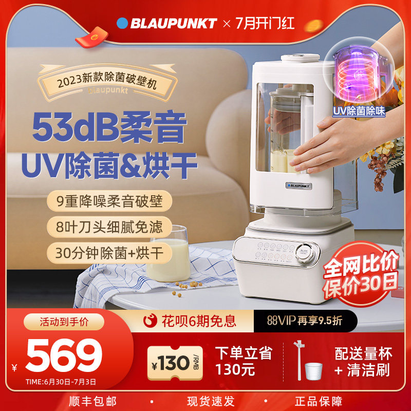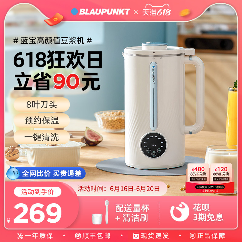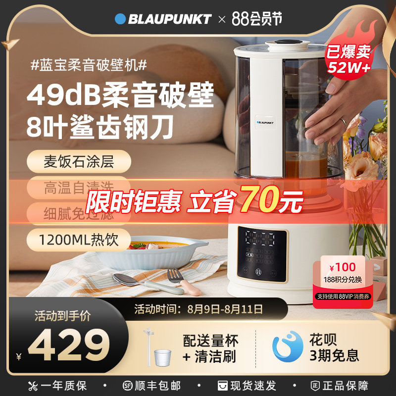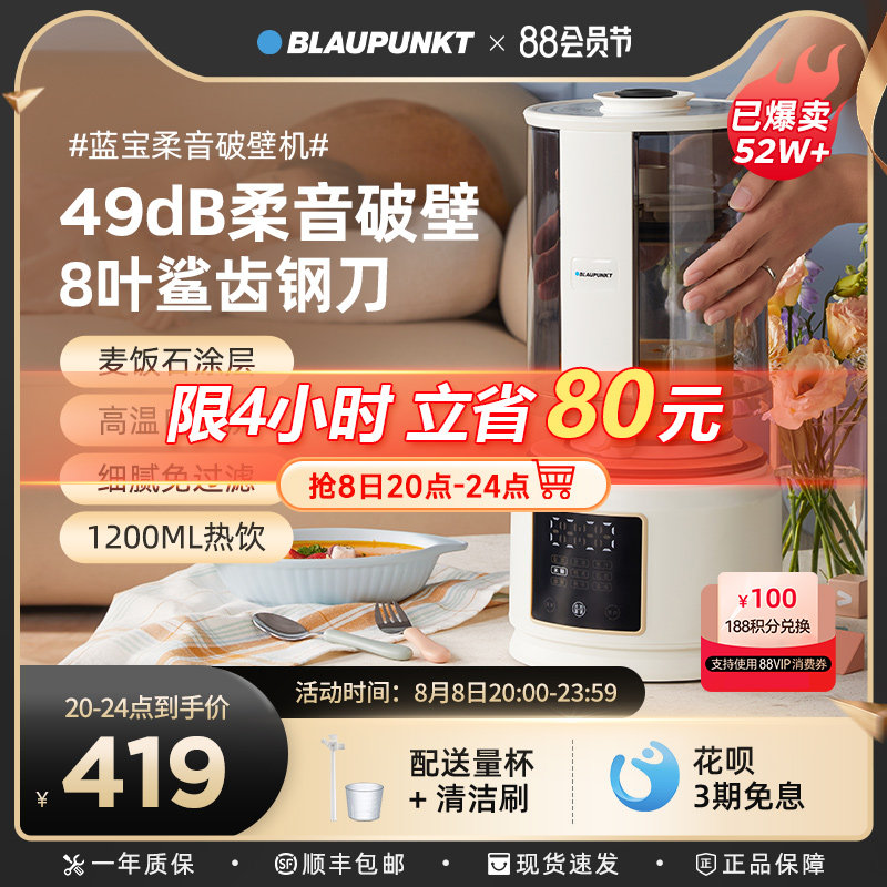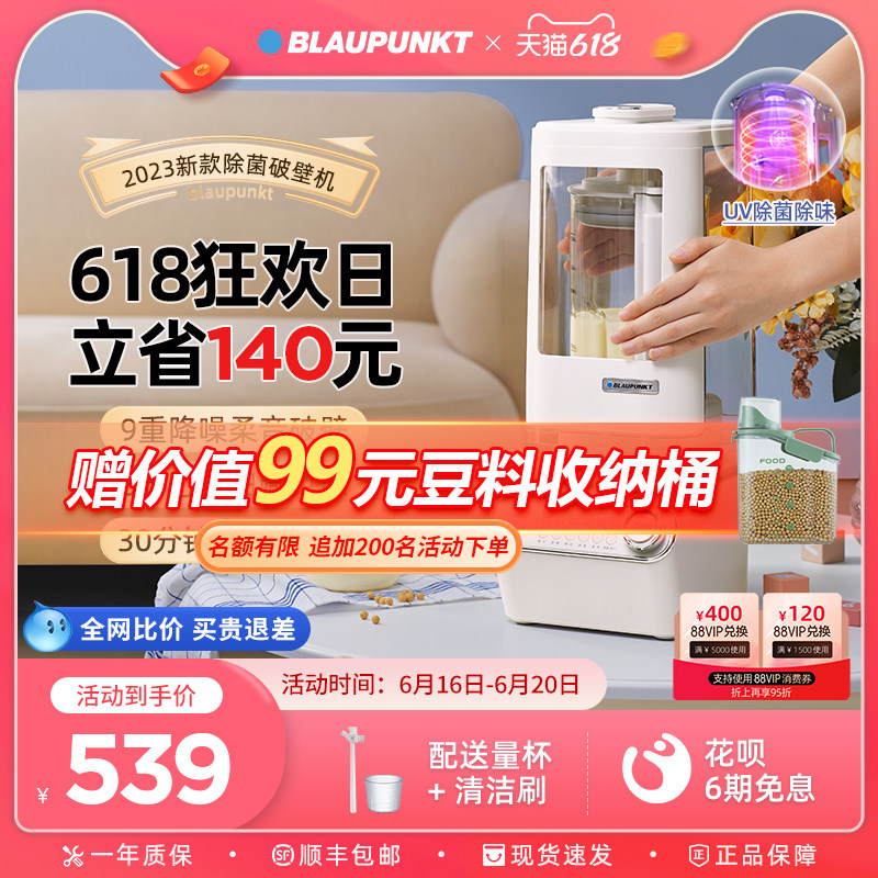 券 200元销量5000德国蓝宝柔音破壁机家用除菌烘干全自动非静音小型豆浆机料理机