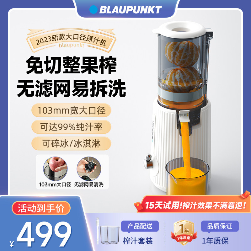 券 124元销量100德国蓝宝榨汁机汁渣分离大口径原汁机家用易清洗全自动慢磨果汁机