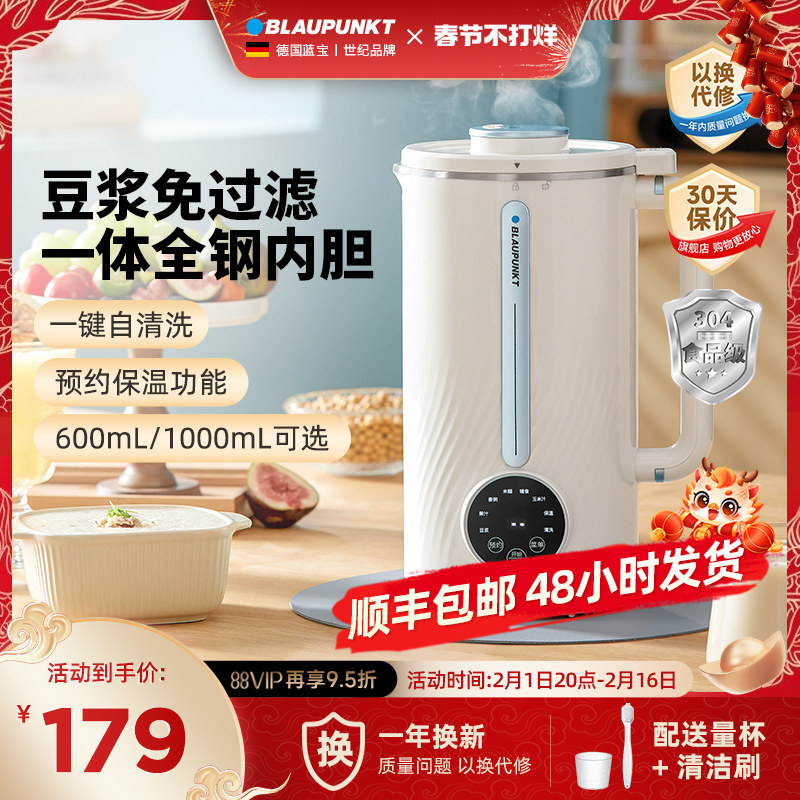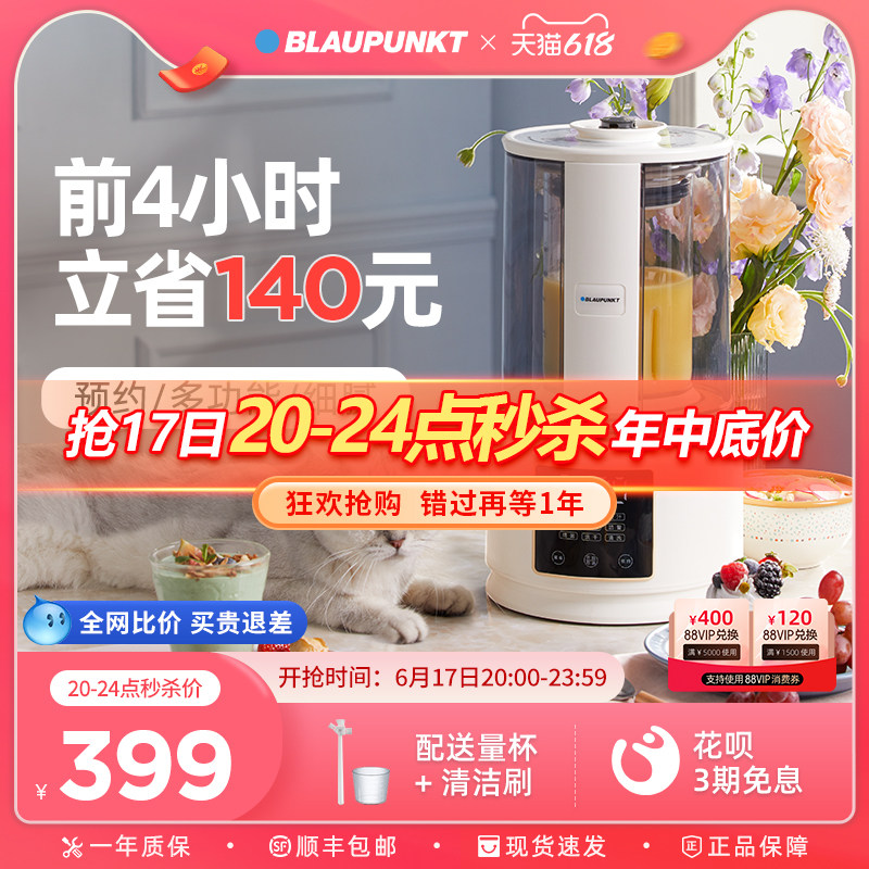券 140元销量400德国蓝宝柔音破壁机家用加热全自动小型豆浆机低噪音多功能料理机