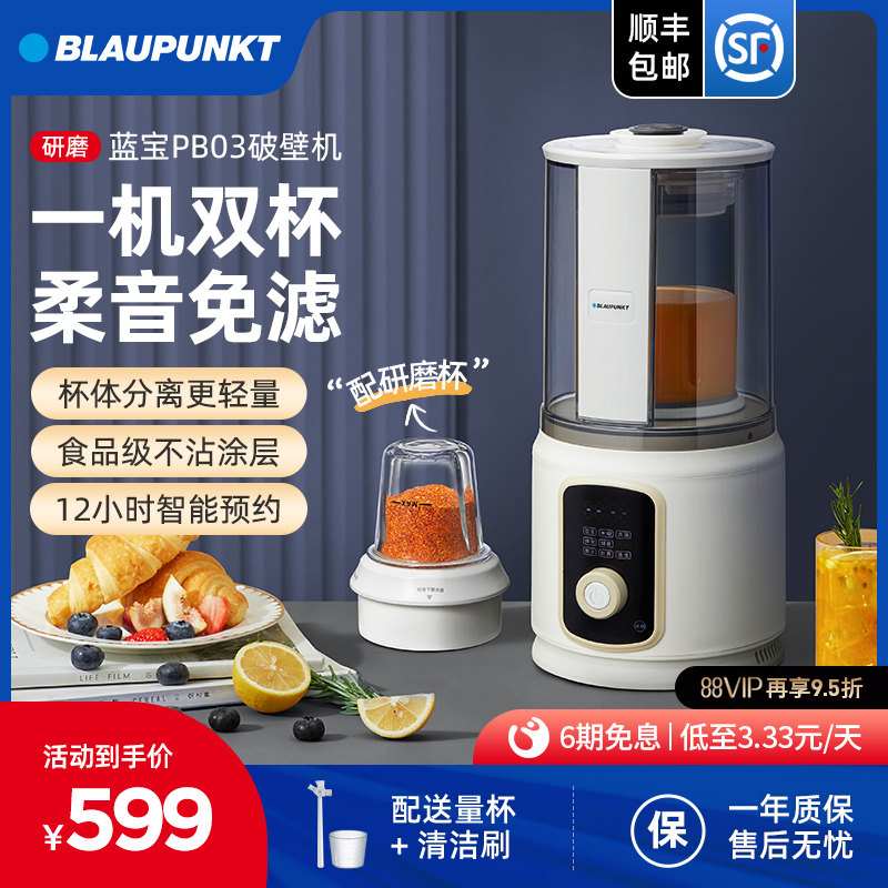 券 300元销量600德国蓝宝柔音破壁机家用加热全自动小型豆浆机非静音多功能料理机