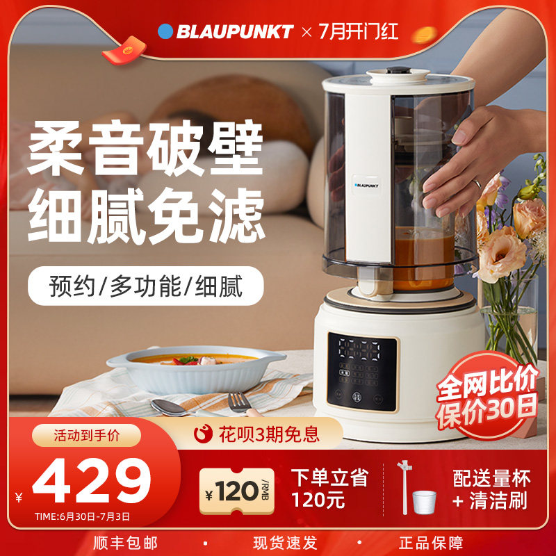 券 140元销量30德国蓝宝柔音破壁机家用加热全自动小型豆浆机低噪音多功能料理机