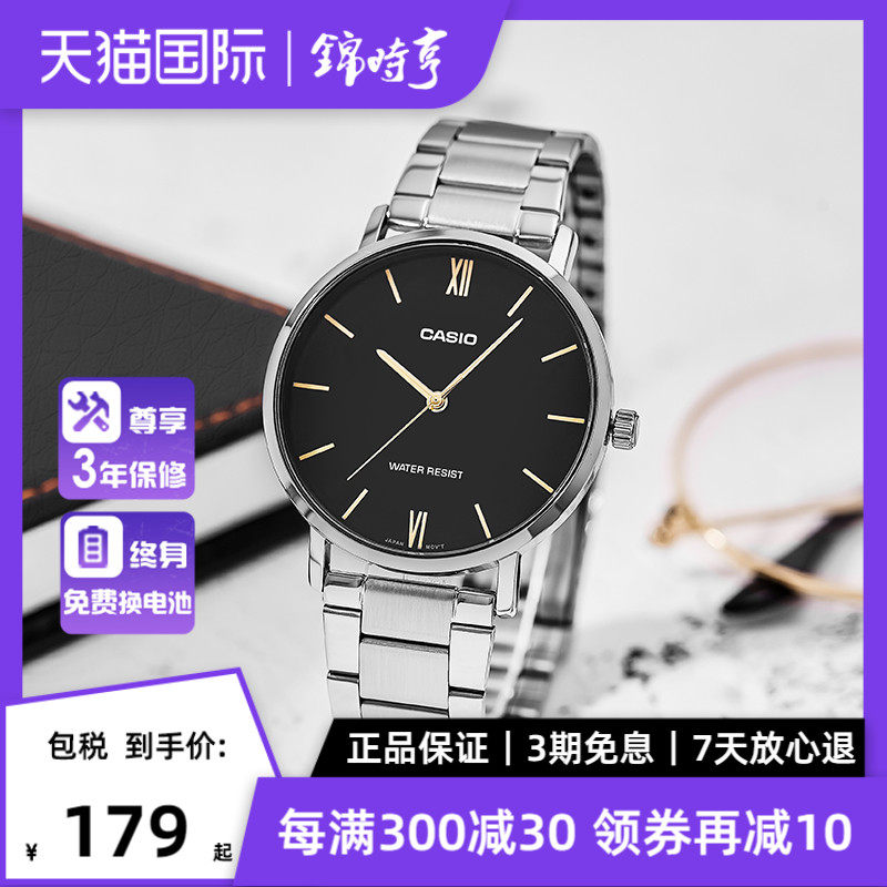 券 10元销量200Casio卡西欧手表男黑暗之心薄款石英男表非机械MTP-VT01 海外直邮