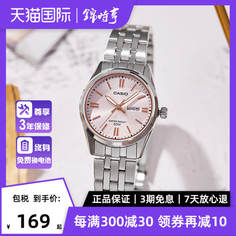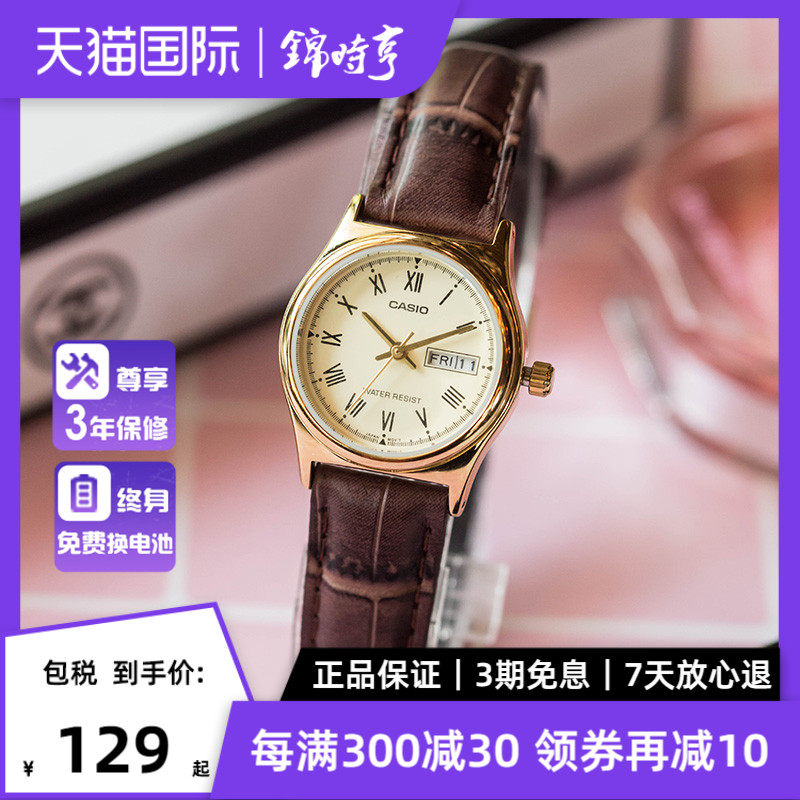 券 10元销量100Casio卡西欧女士学生小众轻奢考试防水石英手表LTP-V005D海外直邮