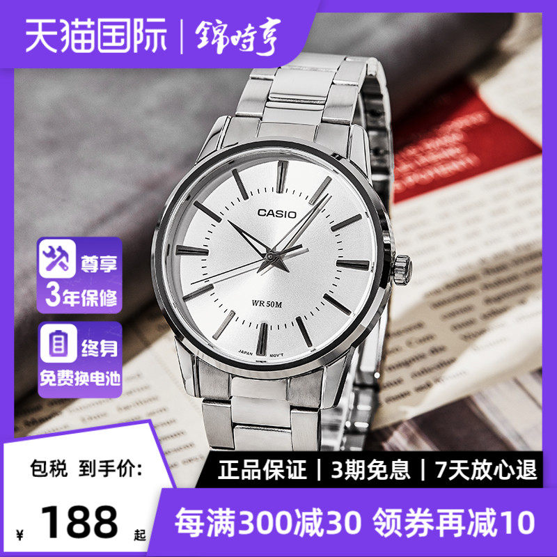 券 10元销量41海外直邮 卡西欧手表男士商务指针钢带防水男表MTP-1303D-7A