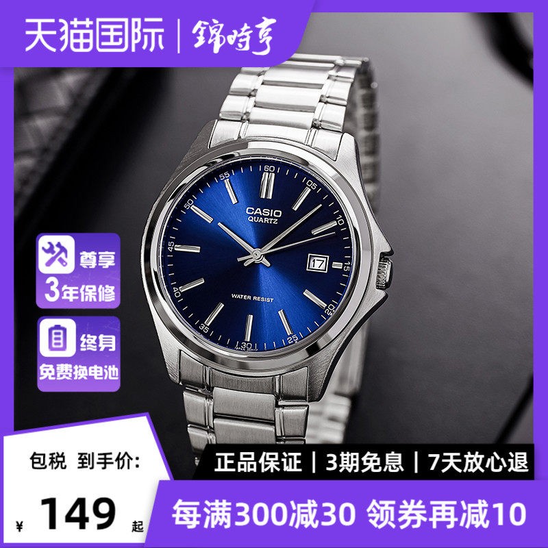 券 10元销量200卡西欧CASIO手表男士小蓝针商务防水石英男表 MTP-1384D 海外直邮