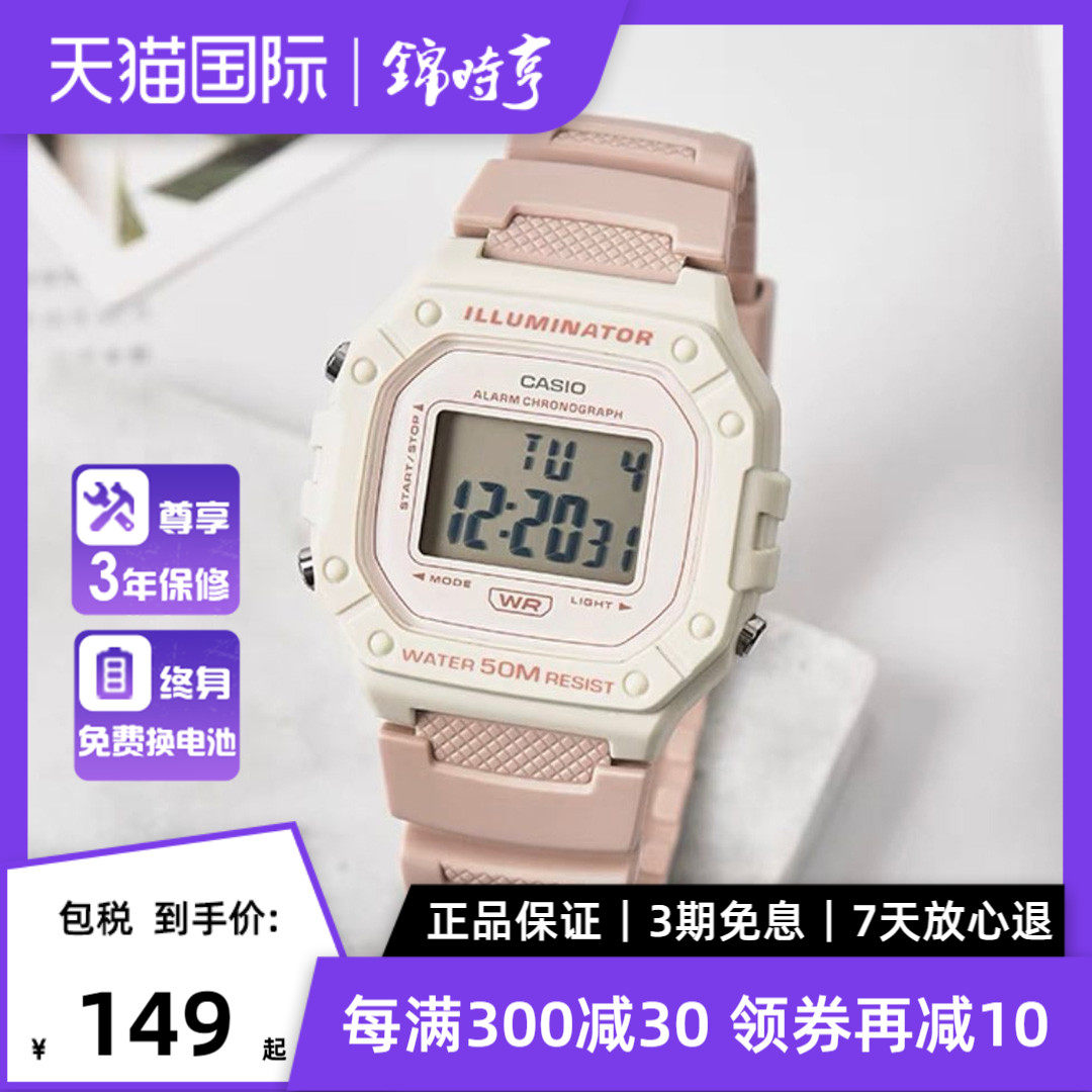 券 10元销量700CASIO卡西欧手表女粉色学生电子运动防水小方块表 218hc 海外直邮