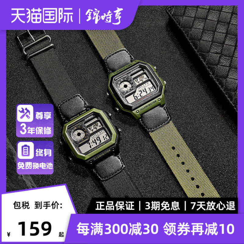 券 10元销量17海外直邮 卡西欧CASIO手表狂飙同款电子运动小方块男表AE-1200WHB
