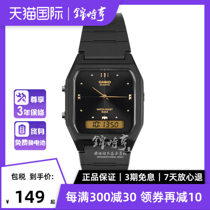券 10元销量17卡西欧AQ230复古小方块小银表电子手表男女中性腕表 海外直邮