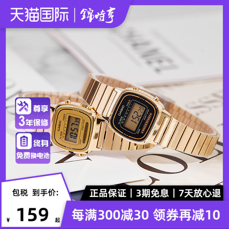 券 10元销量10CASIO卡西欧小方块手表女款小金表钢带数字电子手表LA670WGA