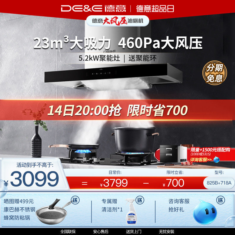 德意大吸力油烟机燃气灶具套餐烟灶套装自清洁欧式抽吸油烟机825B