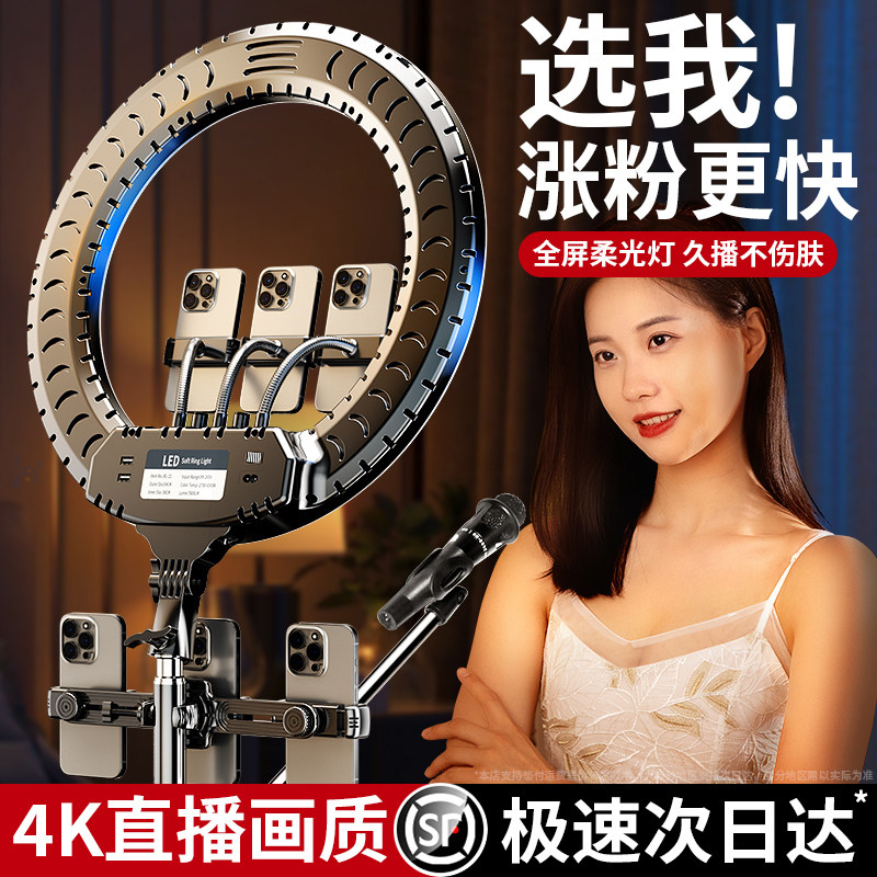 直播补光灯主播专用美颜柔光灯专业led直播间美食服装珠宝带货人像拍摄录视频球形影棚全套灯光设备室内打光