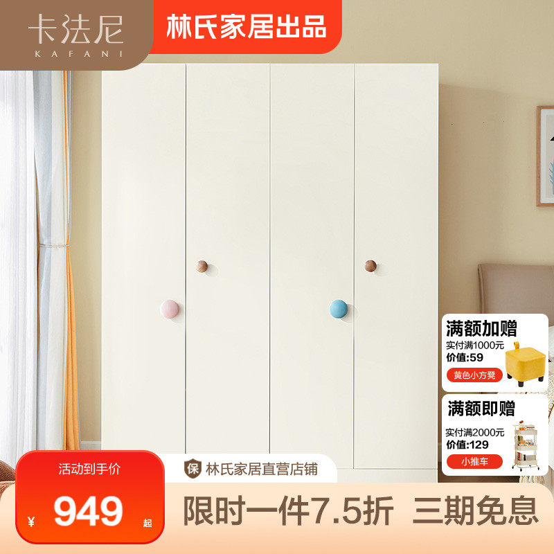 林氏木业高颜值法式奶油风儿童大衣柜柜子家用卧室衣橱储物收纳柜