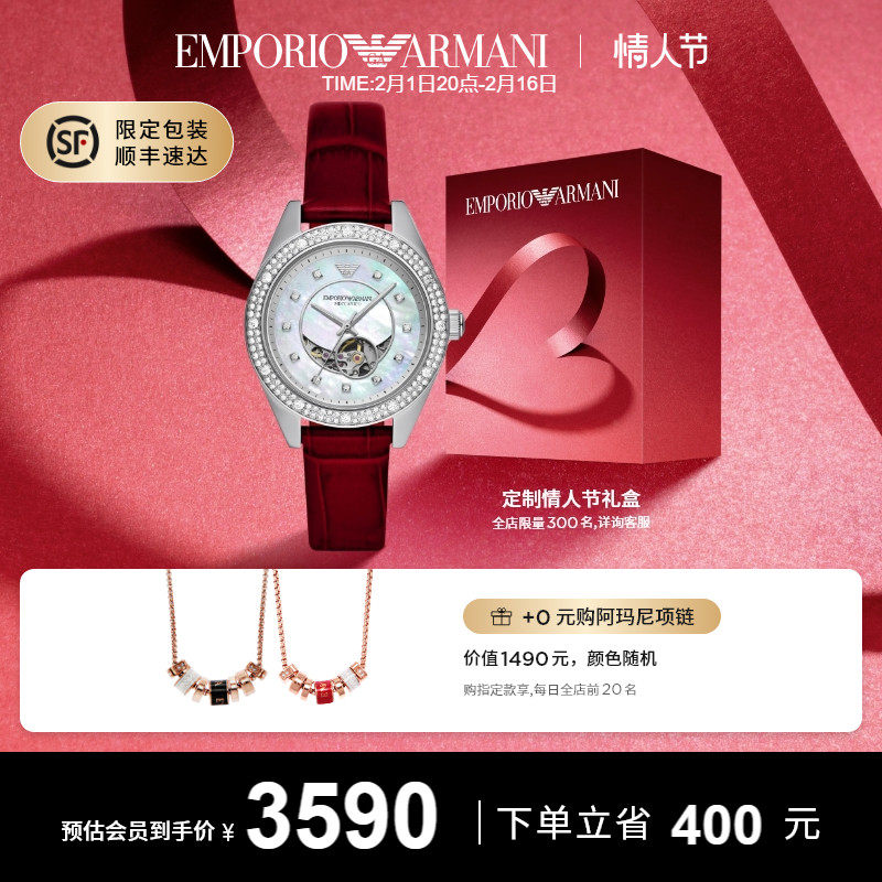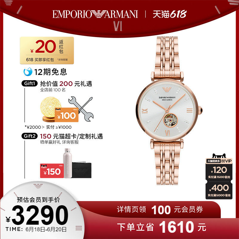 券 614元销量21【情人节礼物】Armani阿玛尼周雨彤同款镶钻机械表龙年款AR60075