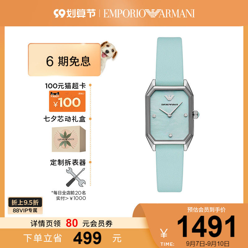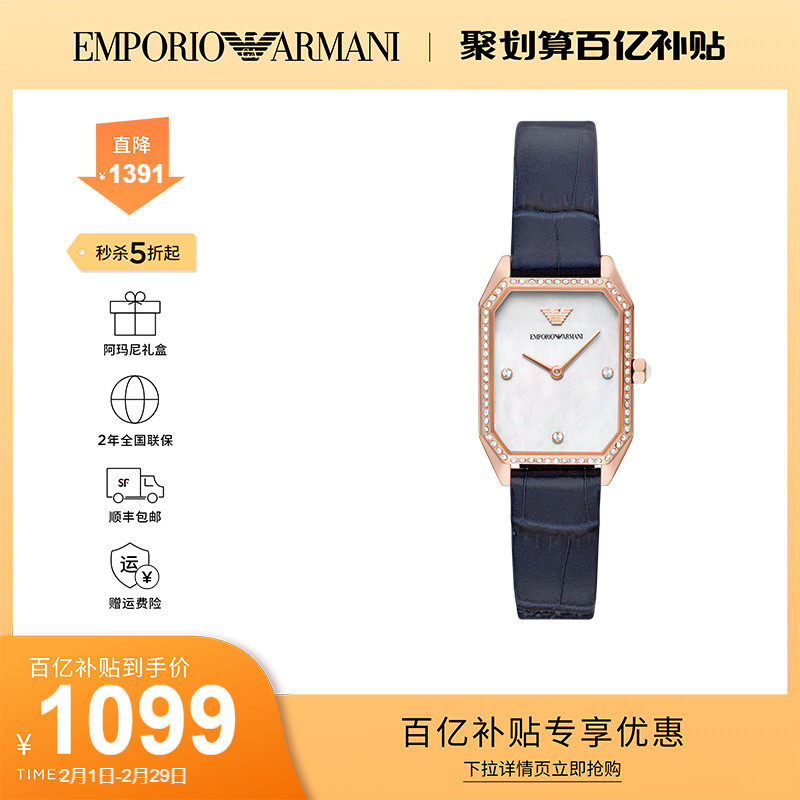 券 400元销量10【情人节礼物】Armani阿玛尼旗舰店小方表气质石英女表AR11466