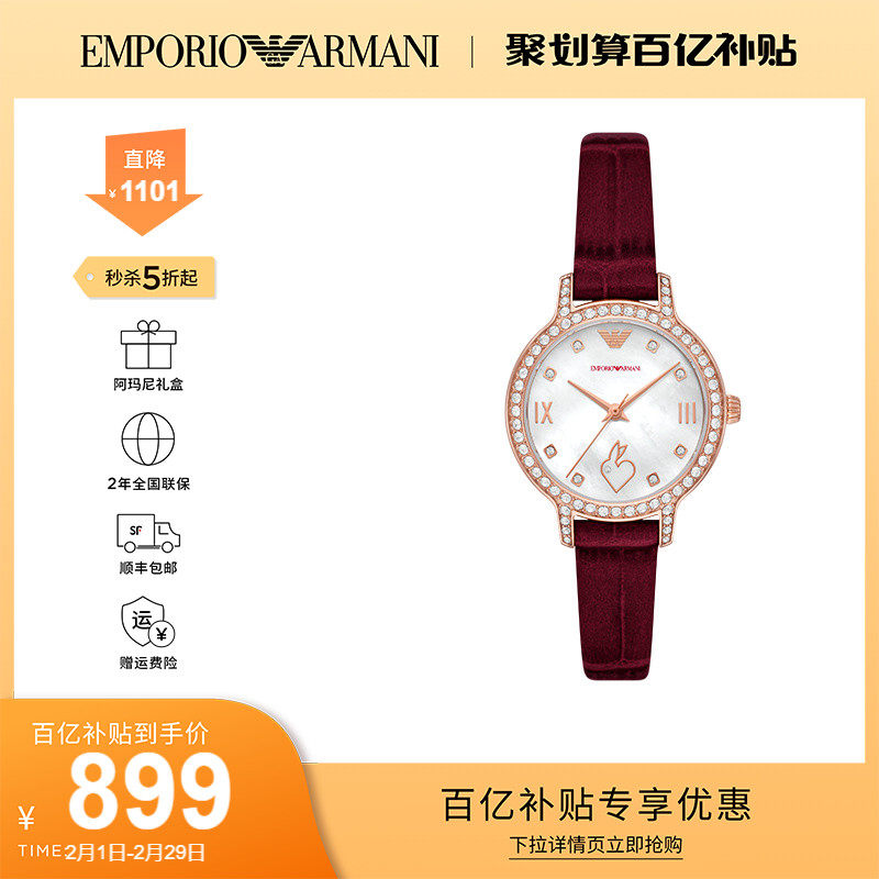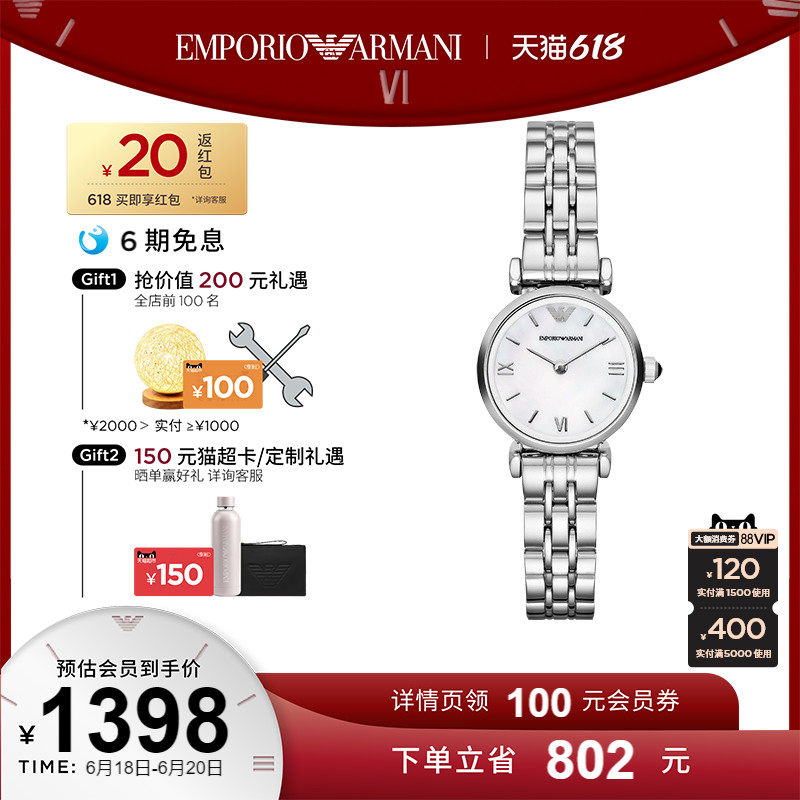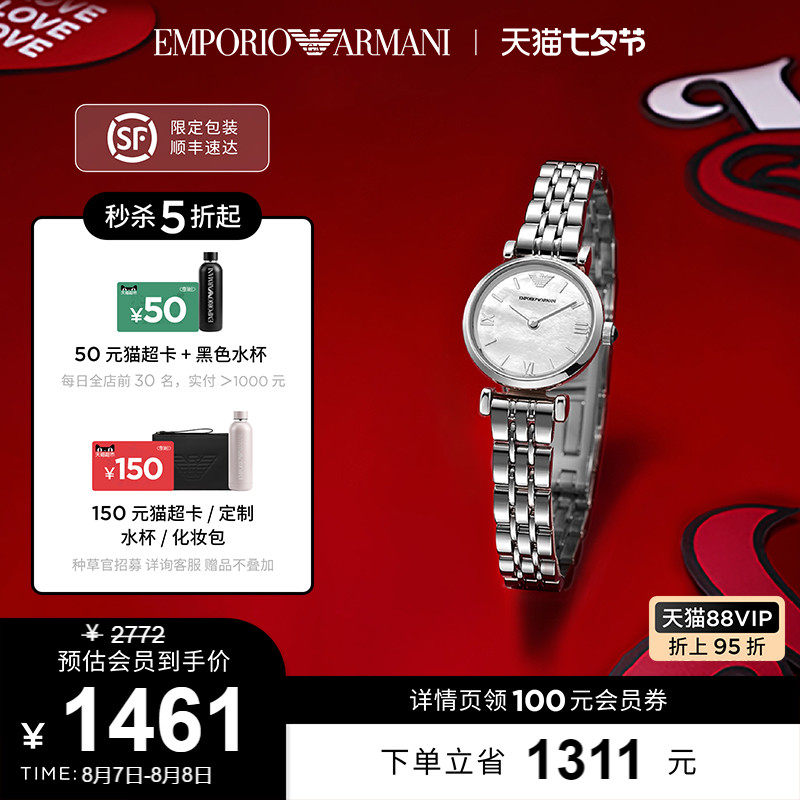 券 311元销量18【官方】Armani阿玛尼白月光手表女款小表盘气质贝母石英表AR1763