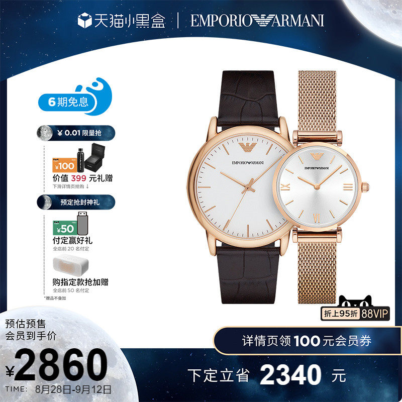 券 270元销量50【预售】Armani阿玛尼手表情侣表一对 简约大气时尚石英表EATZ010