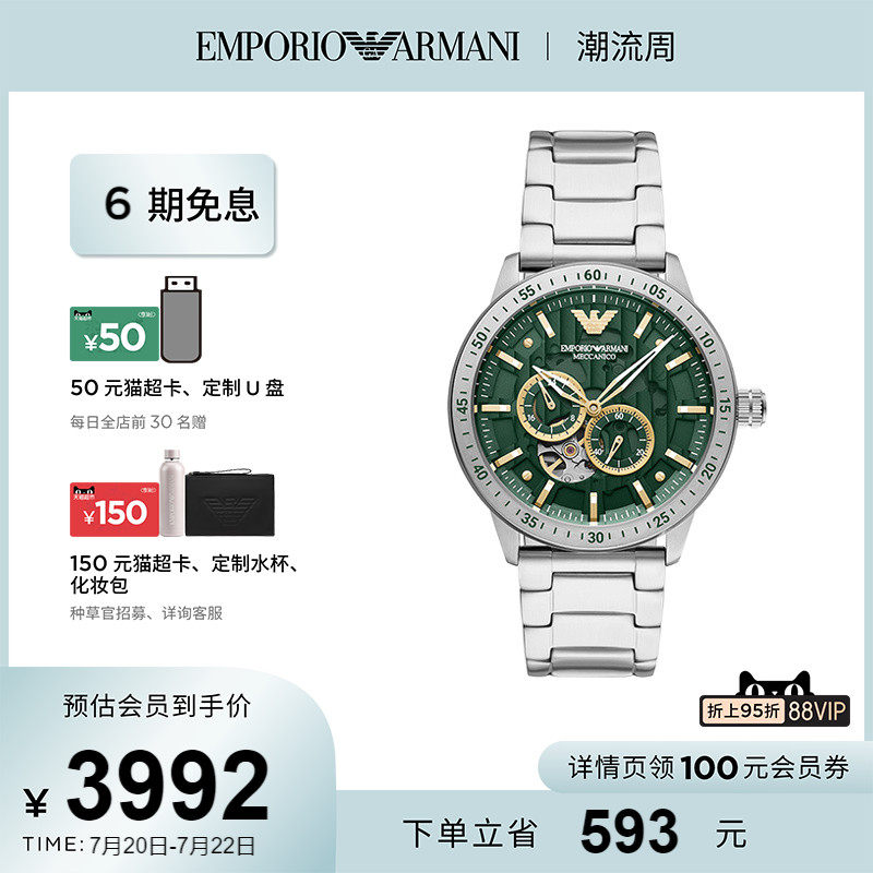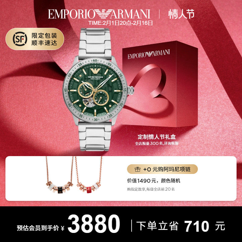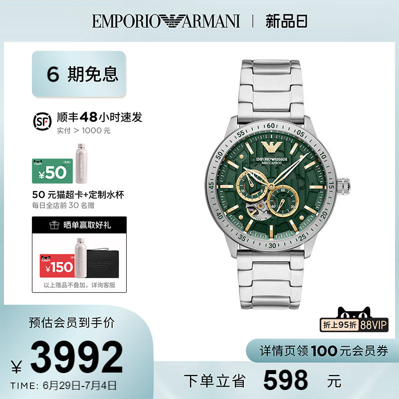 券 251元销量50【官方】Armani阿玛尼手表男士绿水鬼 时尚运动型机械表男AR60053