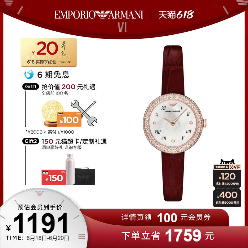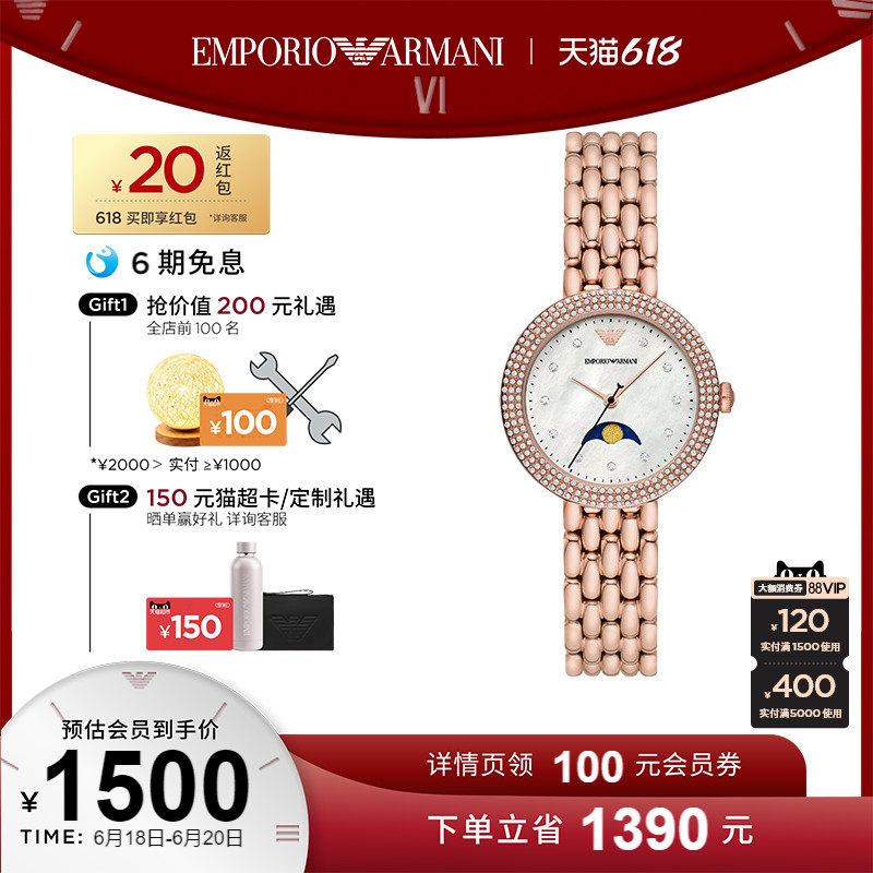 券 300元销量29Armani阿玛尼官方旗舰店白月光手表女 气质石英表腕表女款AR1763
