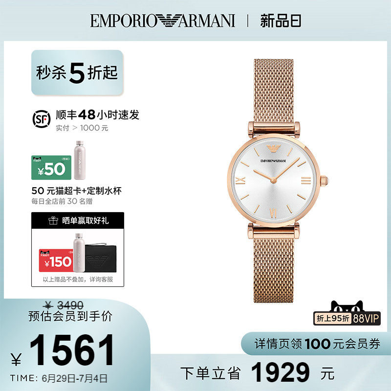 券 320元销量10【正品】Armani阿玛尼旗舰店手表女优雅气质小金表编织钢带AR1956