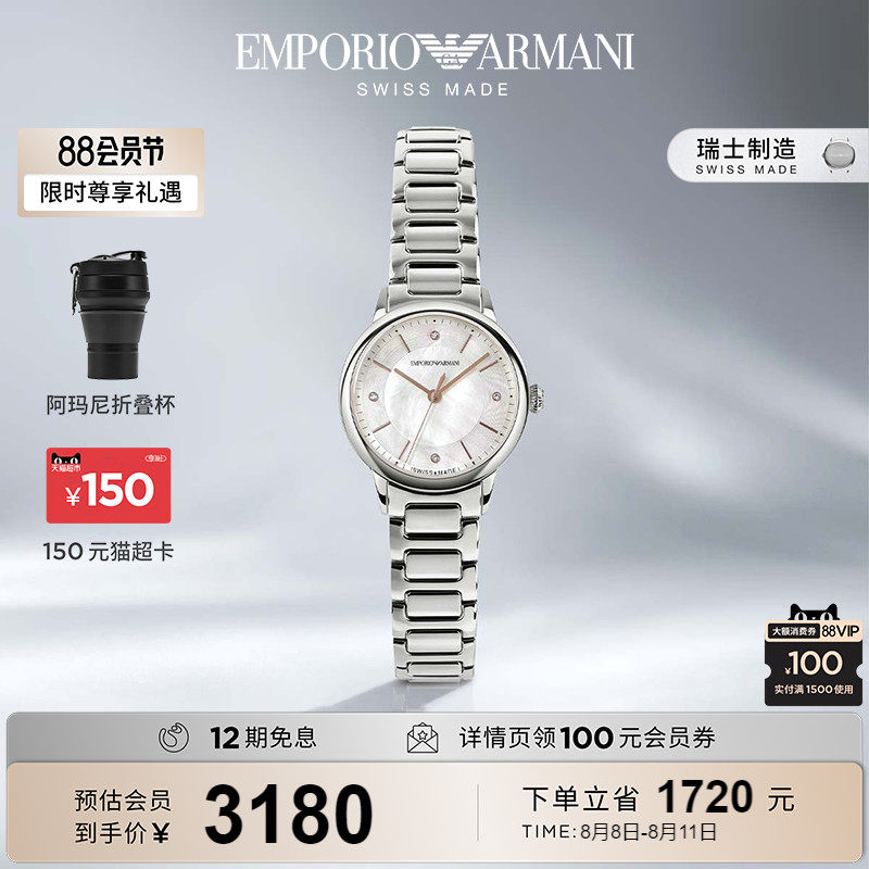券 200元销量27【七夕礼物】Armani阿玛尼手表瑞表女 白月光简约石英腕表ARS5300