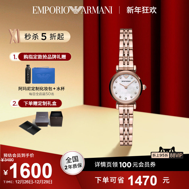 券 355元销量50【新年礼物】Armani阿玛尼官方手表白月光气质玫瑰金女表AR11203