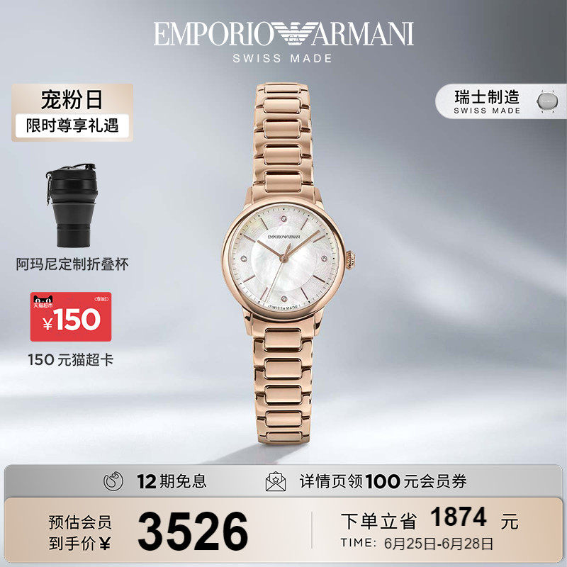 券 200元销量50Armani阿玛尼手表女 简约小金表白月光女士瑞士腕表石英表ARS5301