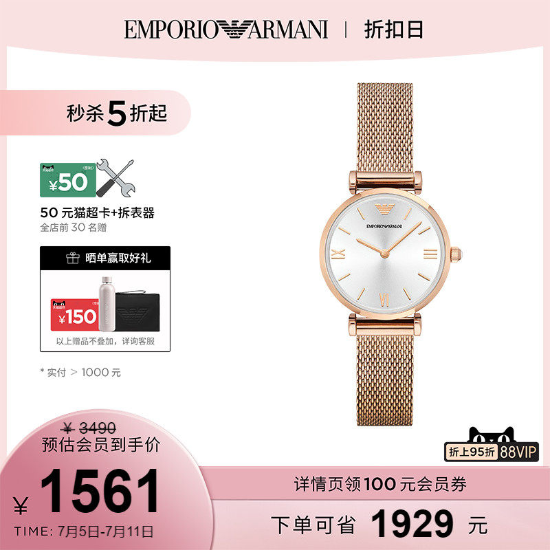 券 311元销量19【正品】Armani阿玛尼旗舰店手表女优雅气质小金表编织钢带AR1956