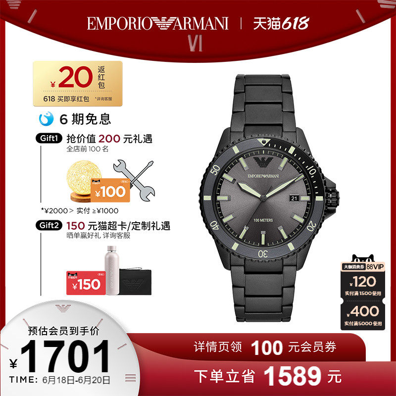 券 260元销量10【官方】Armani阿玛尼多功能酷黑运动男表 男士手表送男友AR1918