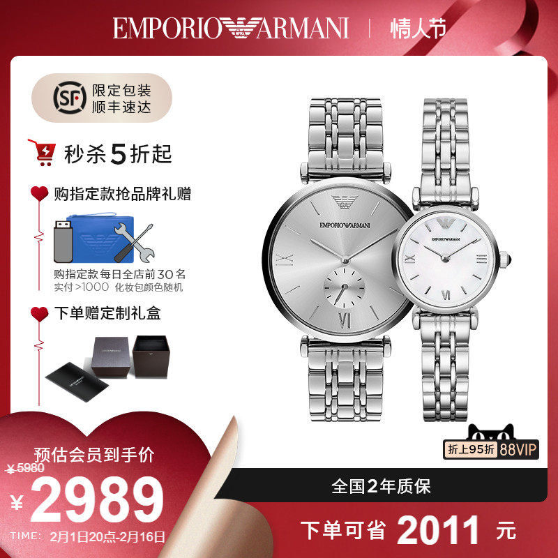 券 200元销量20【情人节礼物】Armani阿玛尼手表情侣对表 简约大气腕表EATZ021