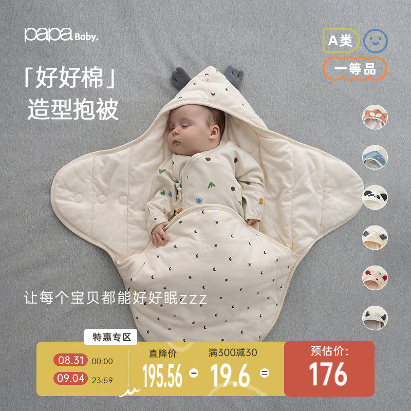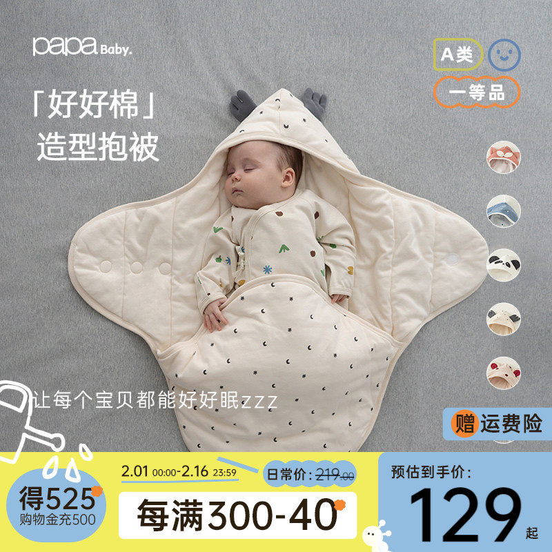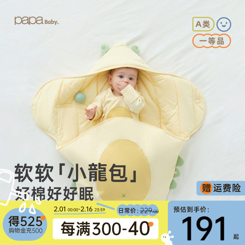 券 10元销量50papa爬爬秋冬新款小龙人抱被新生婴儿包被宝宝防惊跳睡袋保暖纯棉