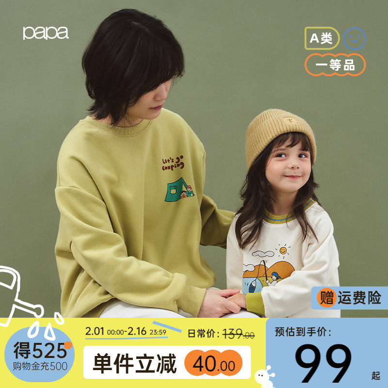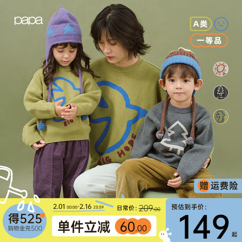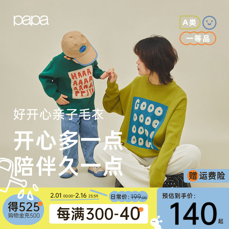 券 10元销量100【亲子装】papa爬爬秋新款儿童纯棉毛衣一家三口时髦男女宝宝毛衫