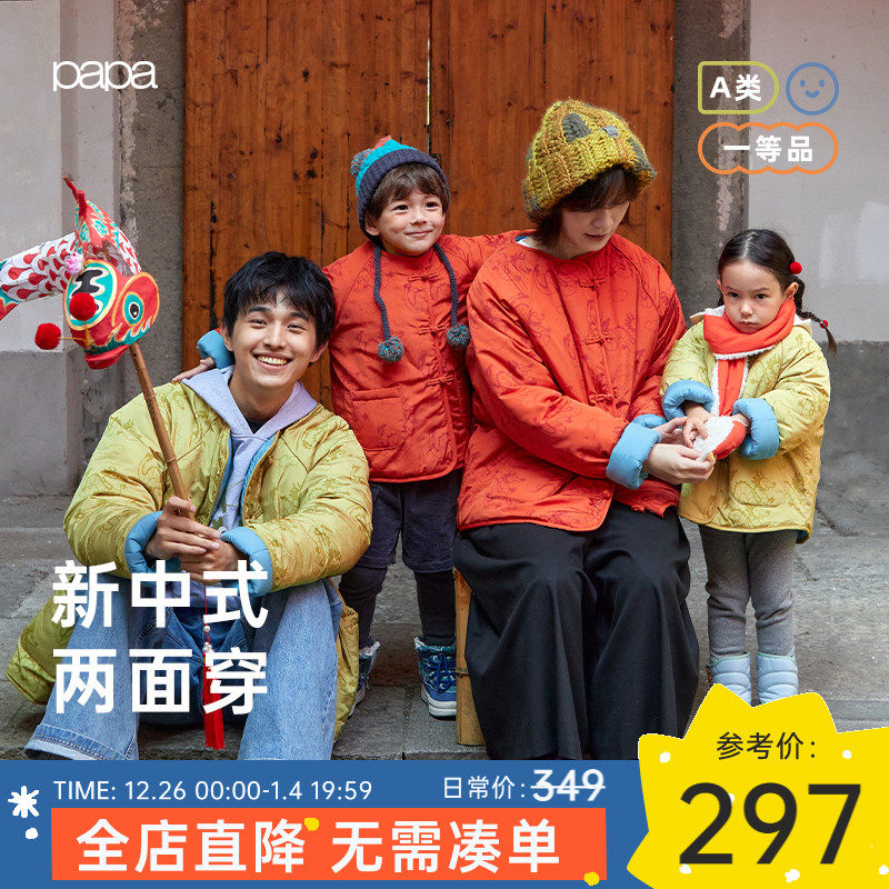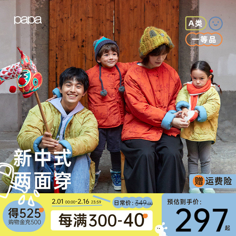 券 10元销量100papa爬爬冬季儿童棉服新拜年服男女宝宝龙年满印中式亲子装外套潮