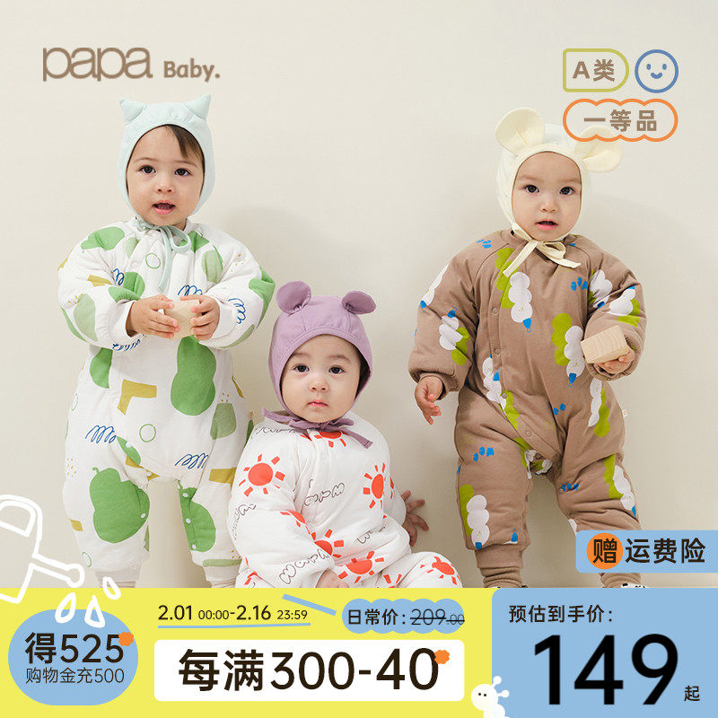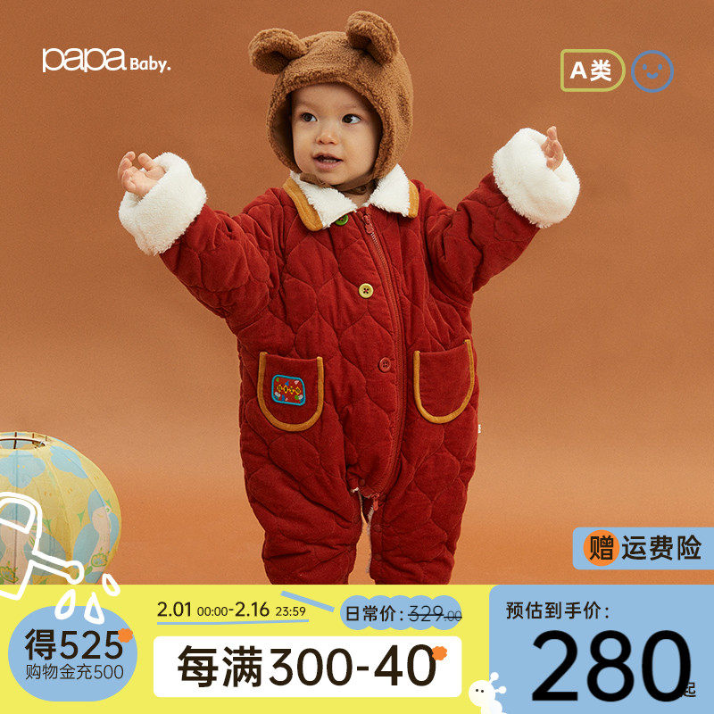 券 10元销量100papa爬爬冬装婴儿连体衣保暖棉袄男女宝宝夹棉爬服外出保暖可爱