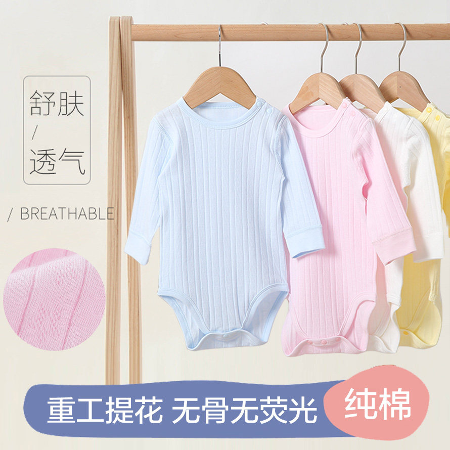 券 2元销量4宝宝长袖包屁衣春秋薄款空调服三角哈衣透气连体睡衣纯棉婴儿内衣