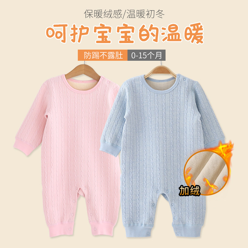 券 2元销量50婴儿半高领连体衣秋冬保暖打底内衣纯棉加厚德绒发热无痕睡衣套装