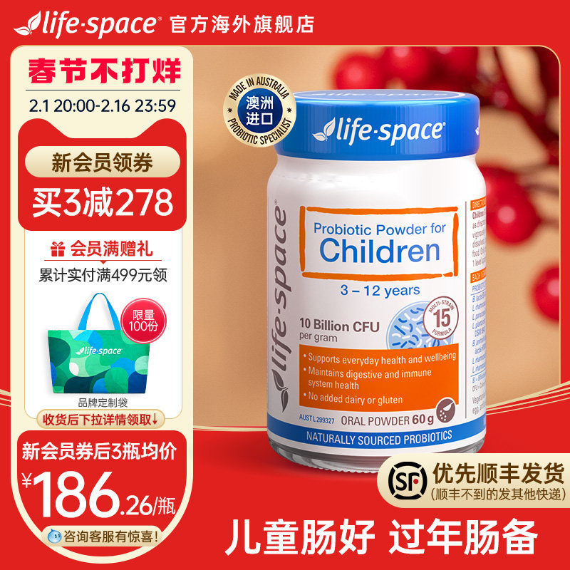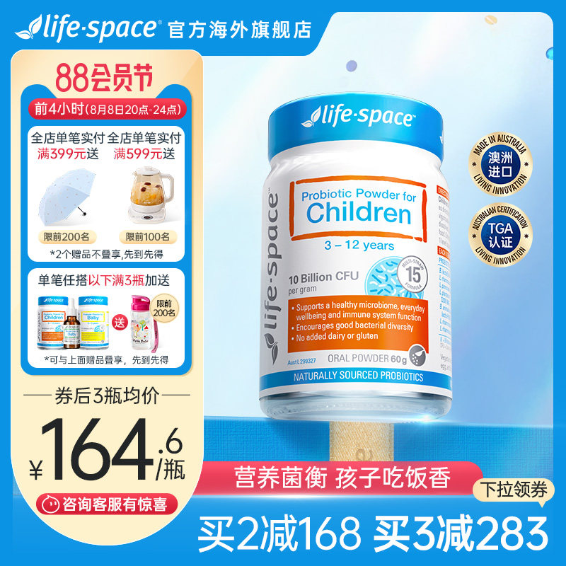 券 31元销量1000澳洲进口life space儿童益生菌粉宝宝肠道养胃3-12岁营养品活性菌