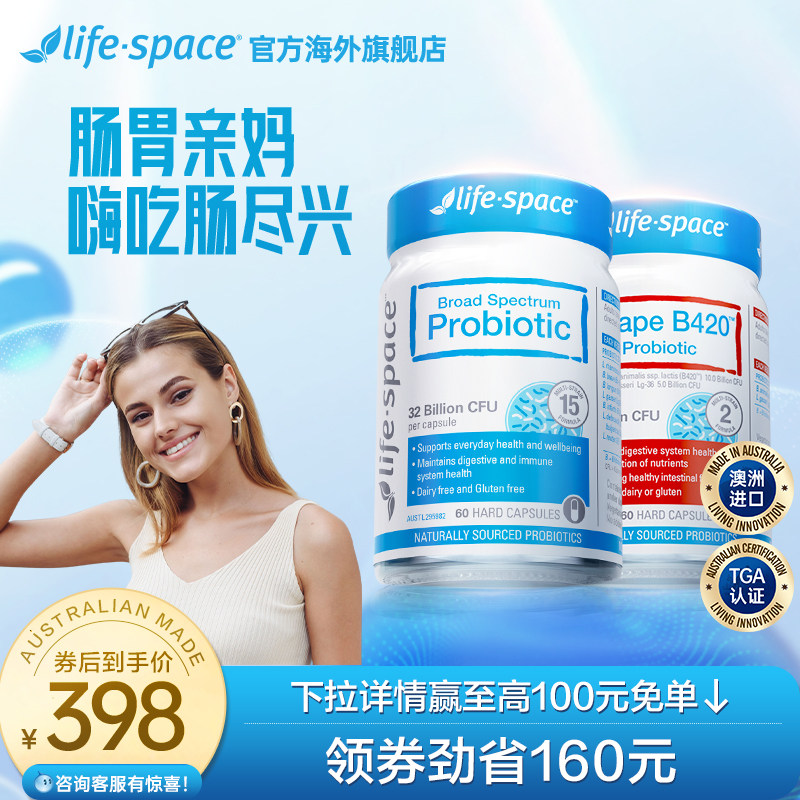 券 60元销量400澳洲进口lifespace广谱肠道益生菌+B420益生菌身材益生菌活菌胶囊