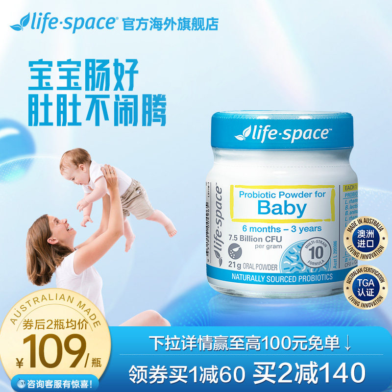 券 84元销量200澳洲进口life space婴幼儿益生菌粉6-36月适用宝宝肠胃尝鲜款21g