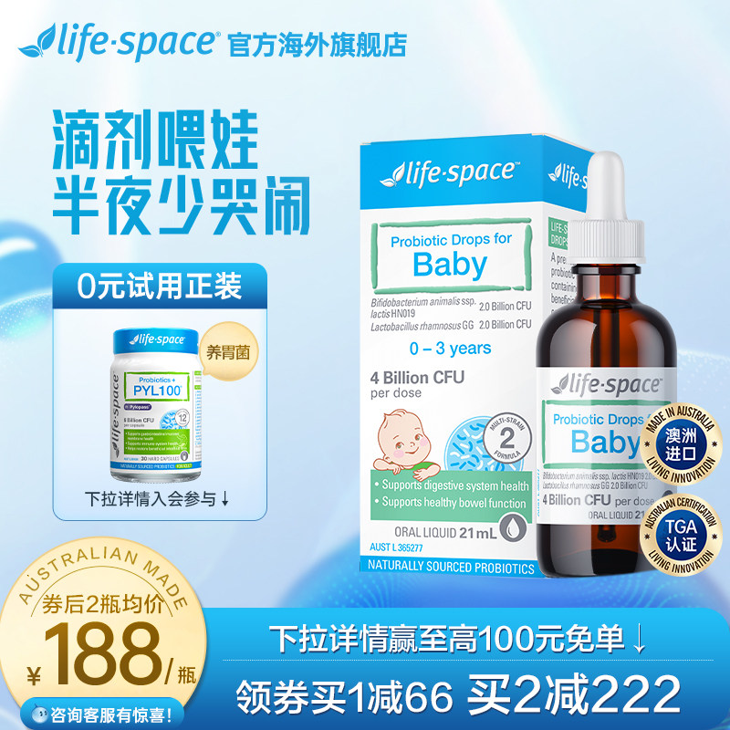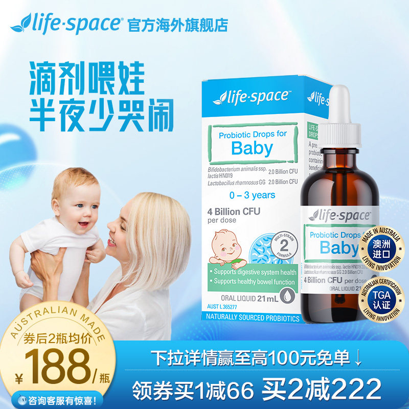 券 40元销量400澳洲进口life space婴幼儿益生菌MCT新生儿宝宝呵护肠胃滴剂21ml