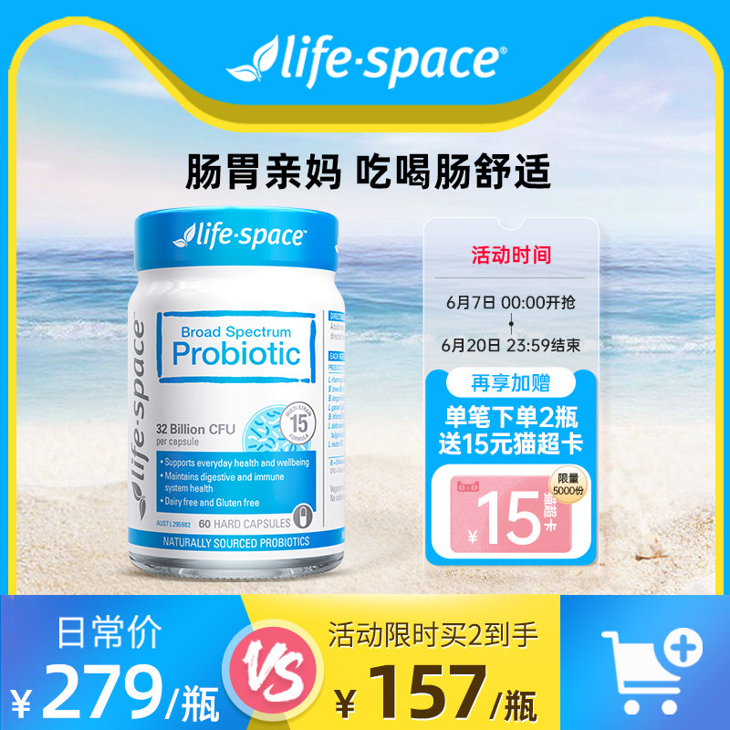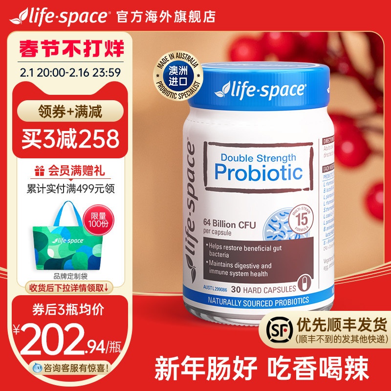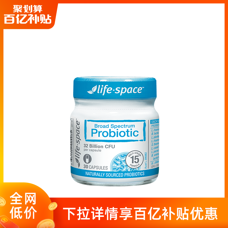 券 30元销量200[下拉详情抢百亿]澳洲life space广谱益生菌养肠道30粒+15粒任选